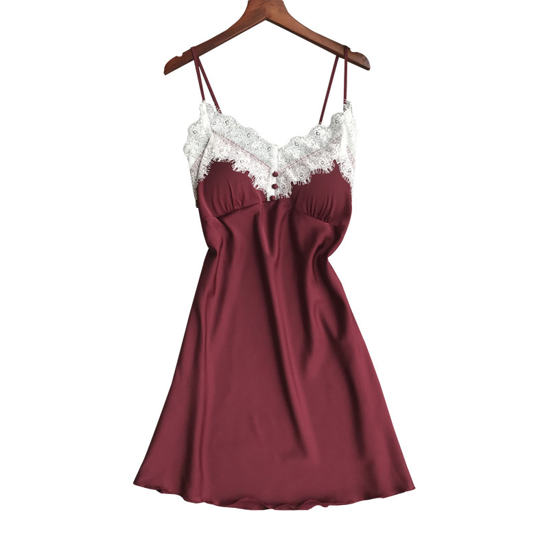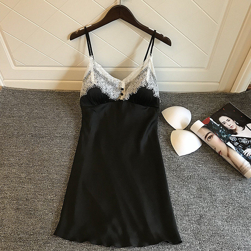 Japan suspender pajamas women summer sexy lace belt chest pad thin ice silk sex seduction large size nightgown