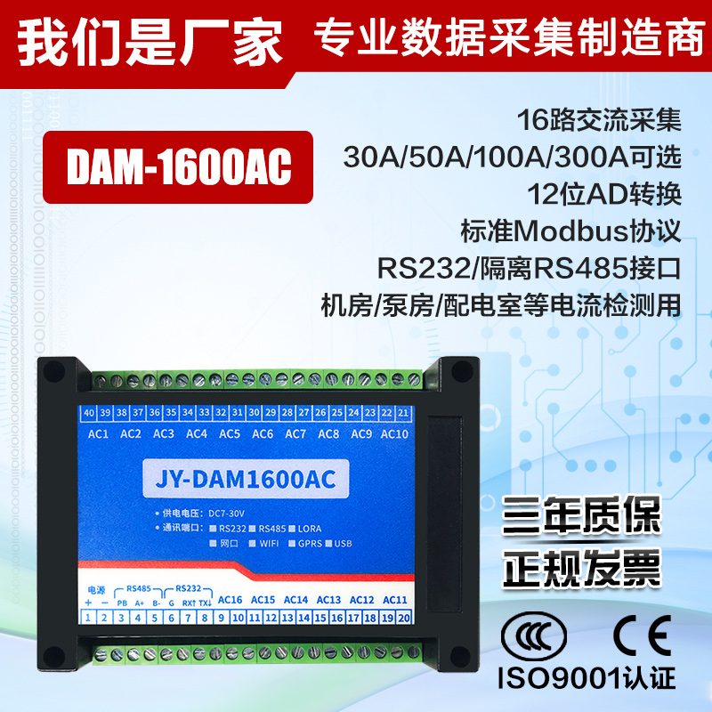 16-way AC current acquisition module Mutual inductance transmitter isolated RS485Modbus protocol 1600AC