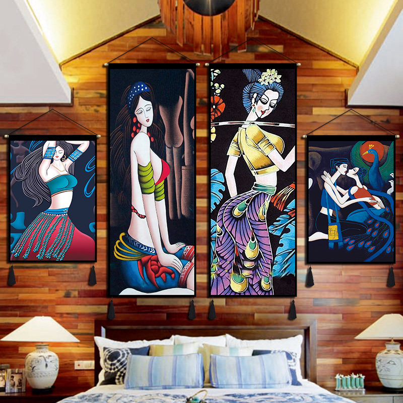 Min Juku Decoration Cloth Art Hanging Painting Yunnan Figure Ethnic Wind Hanging Cloth Hotel Guest House Living Room Bedroom Room Painting Tapestry