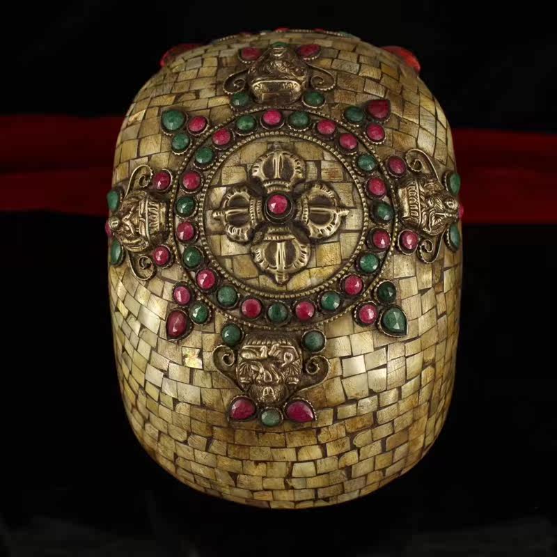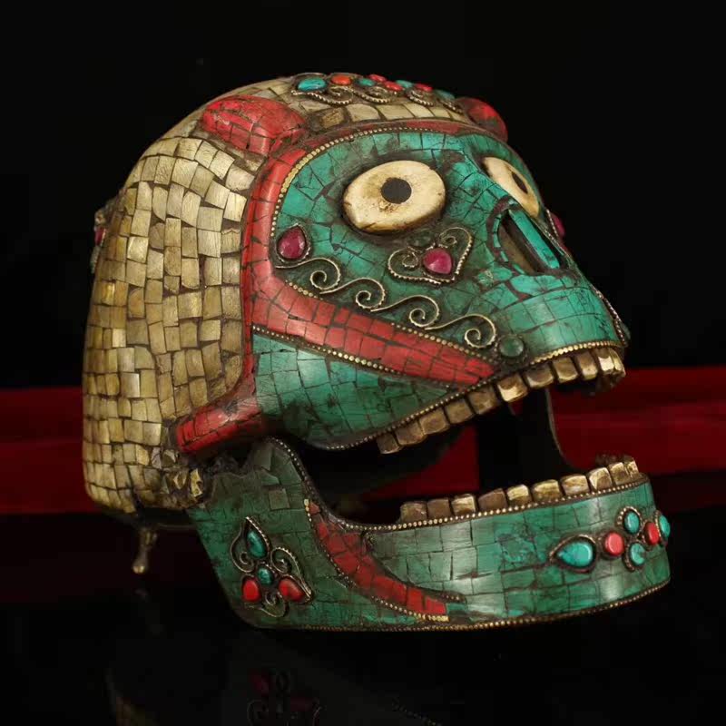 Nepalese process of pure copper hand-made embedded gemstone shell monkey head mask