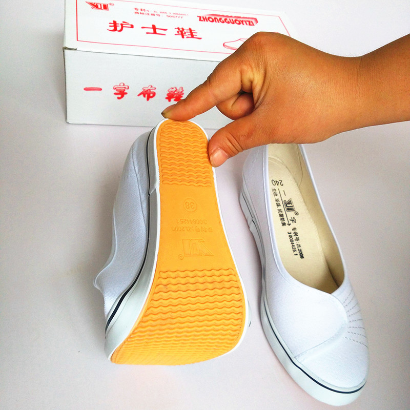 Word Nurse Shoes White Flat Bottom Sails Shoes Hospital Work Casual White Slopes Heel Bull Fascia Anti Slip Nurse Shoes