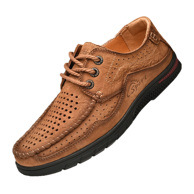 Western Regions Camel Hole Shoes Men's Summer Leather Breathable Men's Hollow Casual Leather Toe Layer Leather Sandals Men