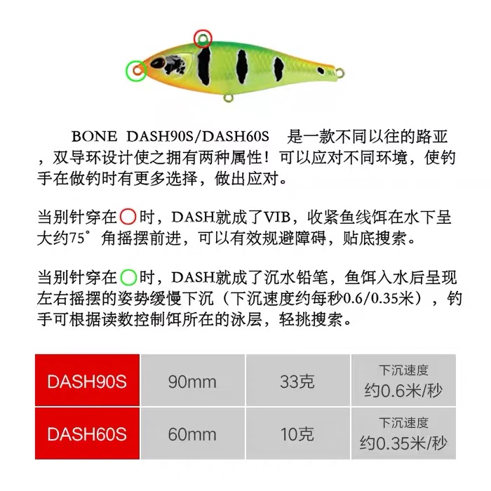 BONE19 new product DASH60S 90S far throw in water pencil VIB double with lujah bait sea bass and fish teething