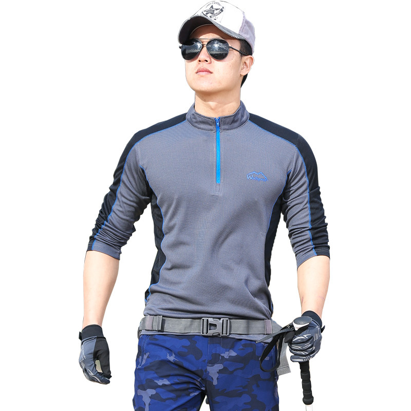 Outdoor quick-drying clothes men's long-sleeved T-shirt stand collar loose large size quick-drying clothes Sports mountaineering hiking sweat-absorbing breathable summer