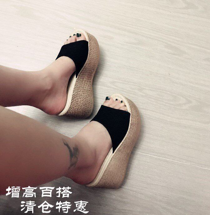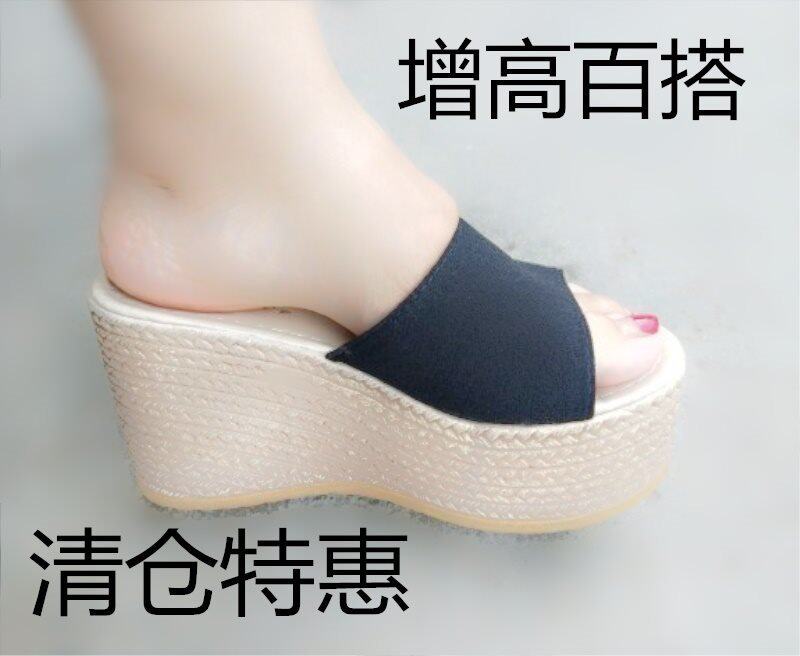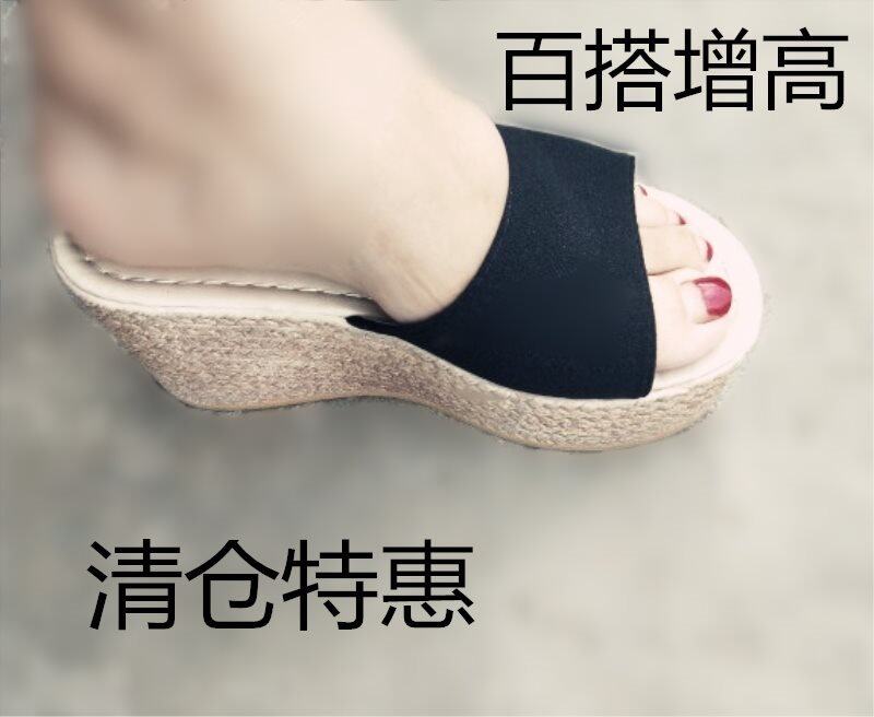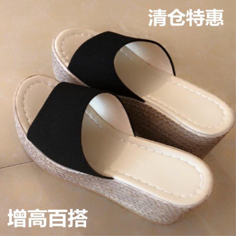 Korean version of the new thick-bottomed slope with slippers Women summer fashion outside wearing a cake bottom word drag sandals increased women's sandals slippers