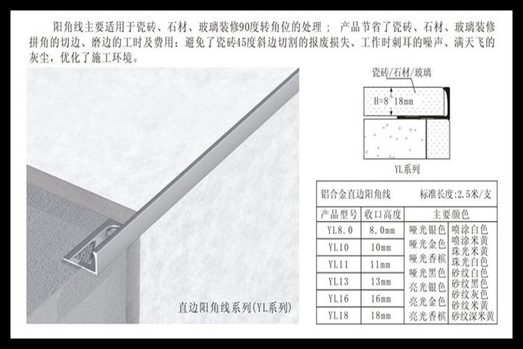 Xinmeige tile straight edge yang angle line YL series mouth guard corner line aluminum alloy corner guard wall corner line