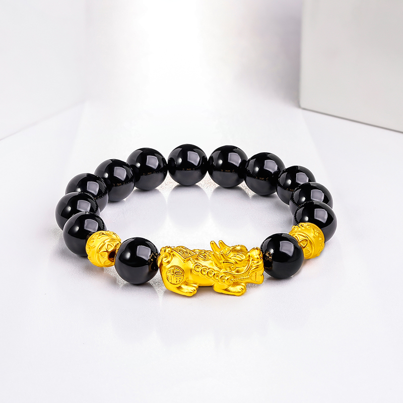 Saturday Fortune jewelry gold bracelet men's 3D hard gold transfer beads Agate Pixiu men's full gold hand string to send boyfriend