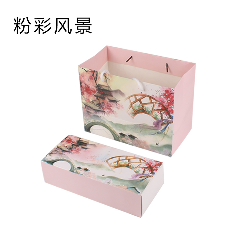 Powder Blue Flowers Box Powder Blue Flowers Handbag Pink Landscape Box Pink Scenic Hand Bags