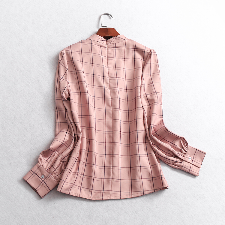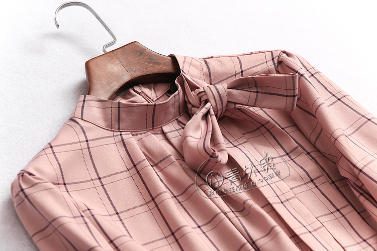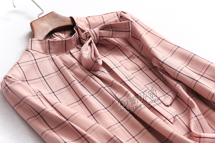 W223 temperament women's spring new plaid bow tie long sleeve fashion top women's shirt shirt