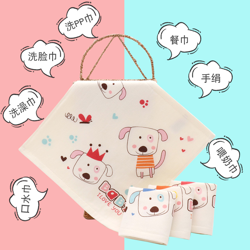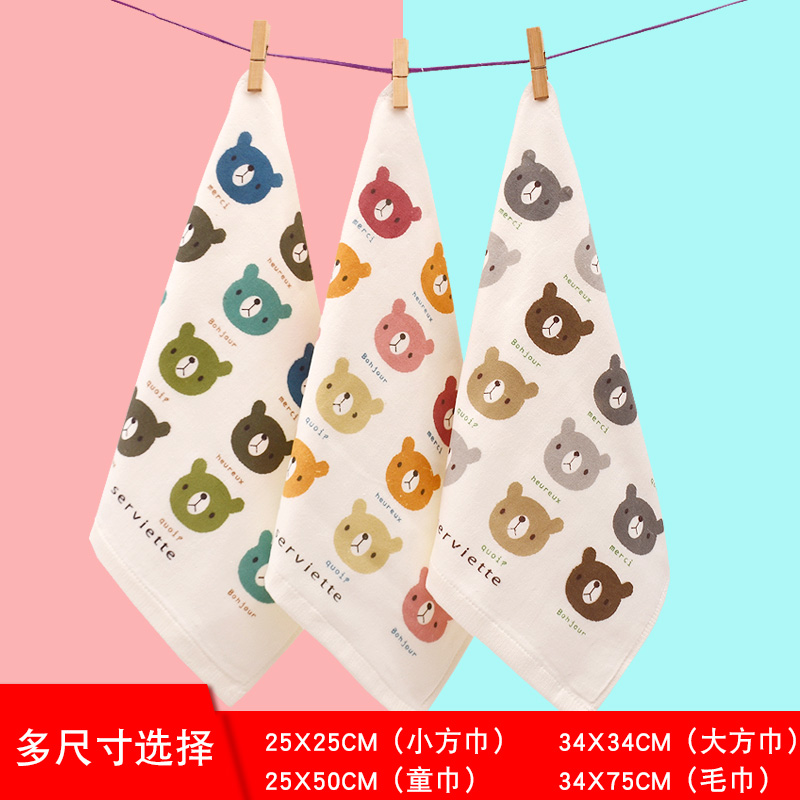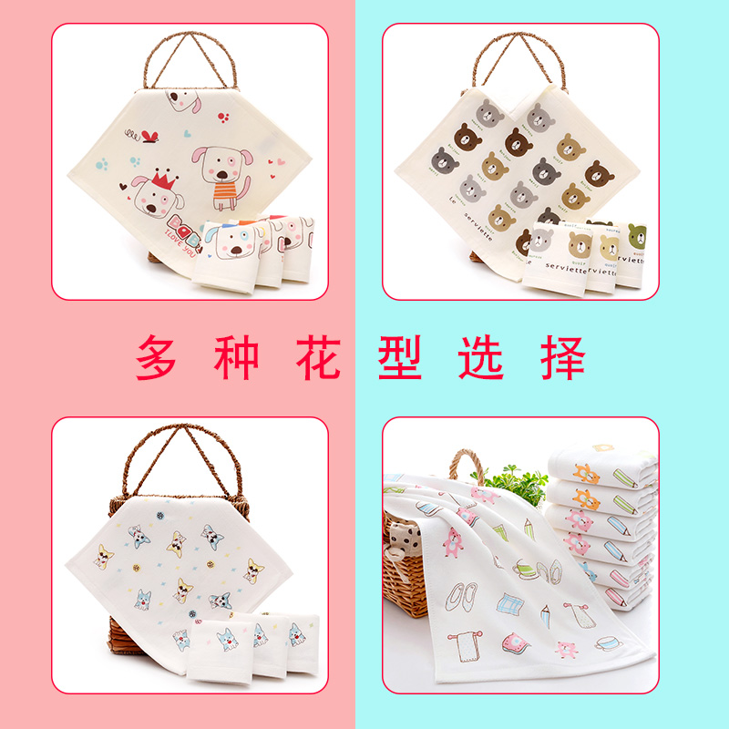 Baby wash face small square towel square print cartoon 3 pack baby wash face cotton small towel children's handpass