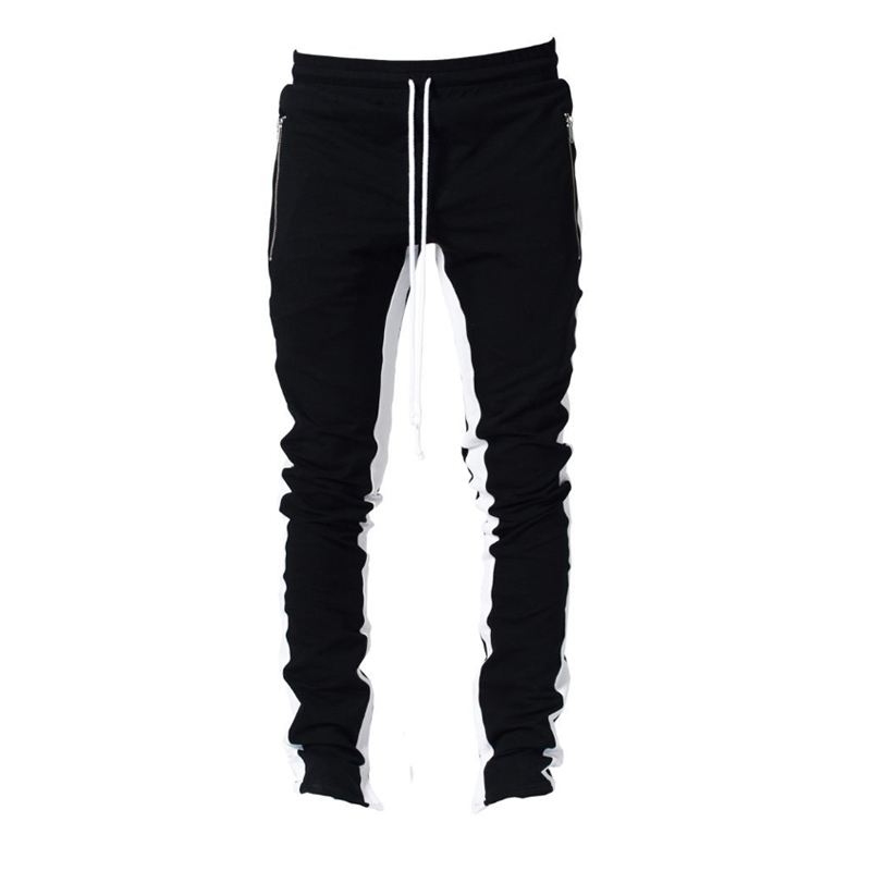 Muscle fitness sports pants casual trousers men's slim color matching zipper sweat pants running training pants cigarette pants elastic