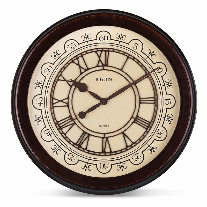 RHYTHM Lisheng Wall Clock Living Room Japanese Large Quartz Clock Solid Wood Mute Simple Creative Clock Vintage Clock