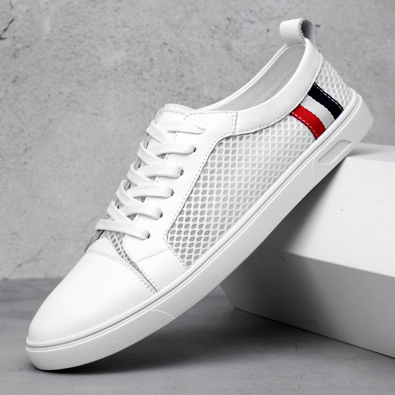 Summer mesh shoes men's Korean version of the versatile breathable mesh shoes genuine leather soft-soled casual shoes mesh cloth cutout white board shoes men