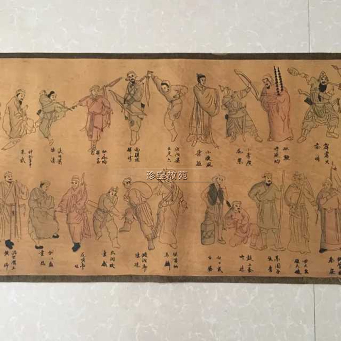 Antique painting, long scroll, Chinese painting, figure painting, living room decoration, old hanging painting, landscape 3.6 meters, 108 will scroll painting large size