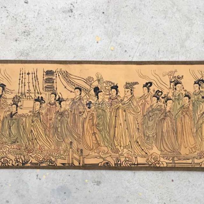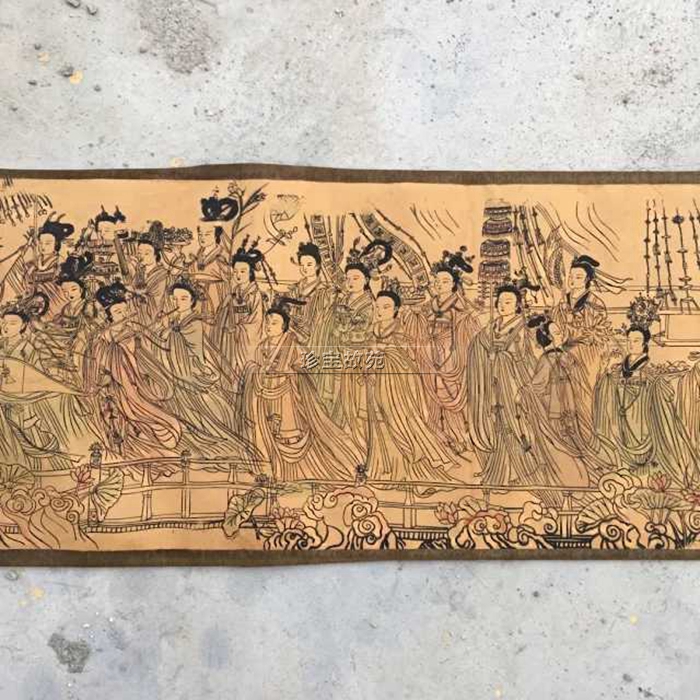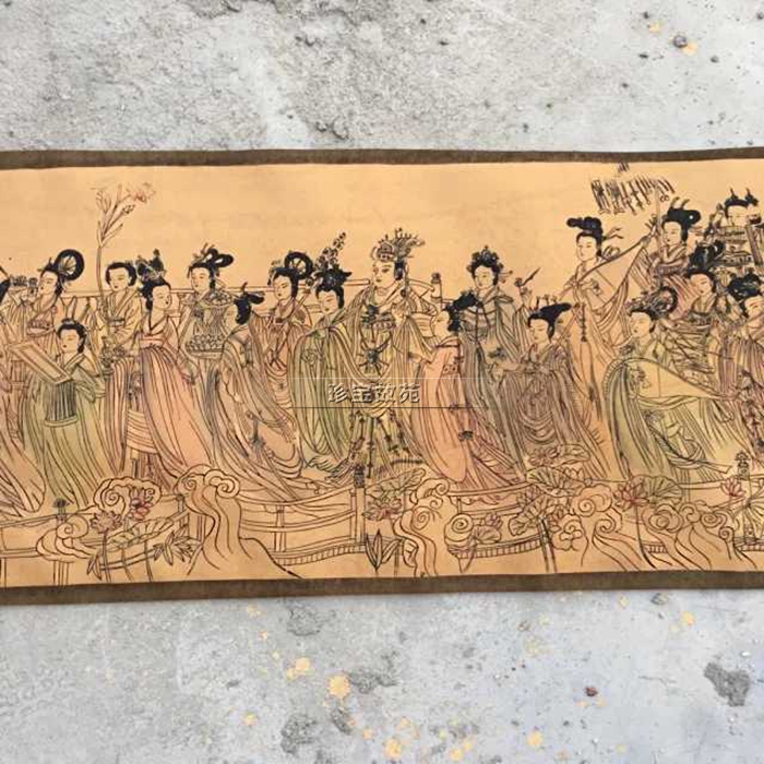 New antique painting long scroll Chinese painting characters silk living room decoration Old hanging painting Eighty-seven fairy scroll painting large size
