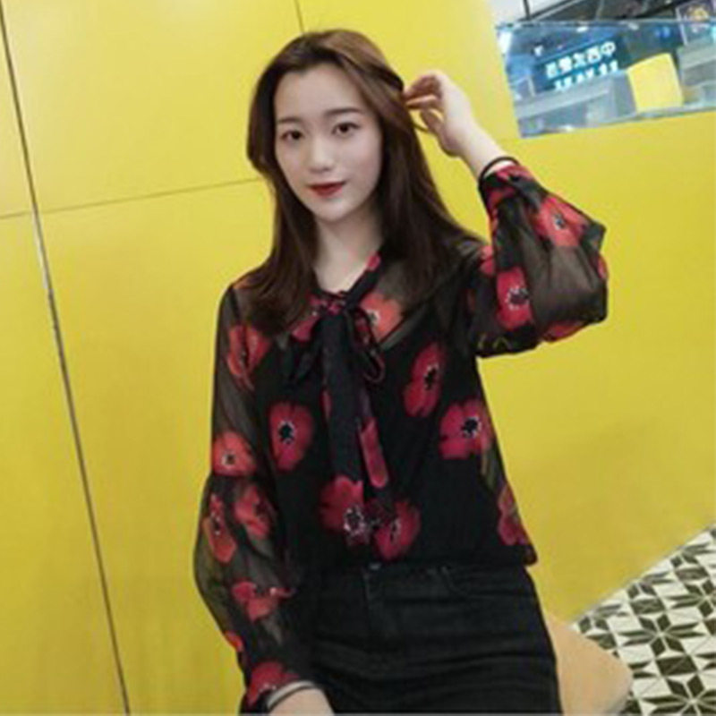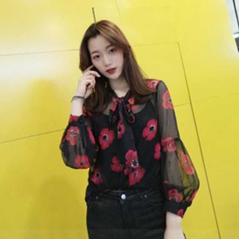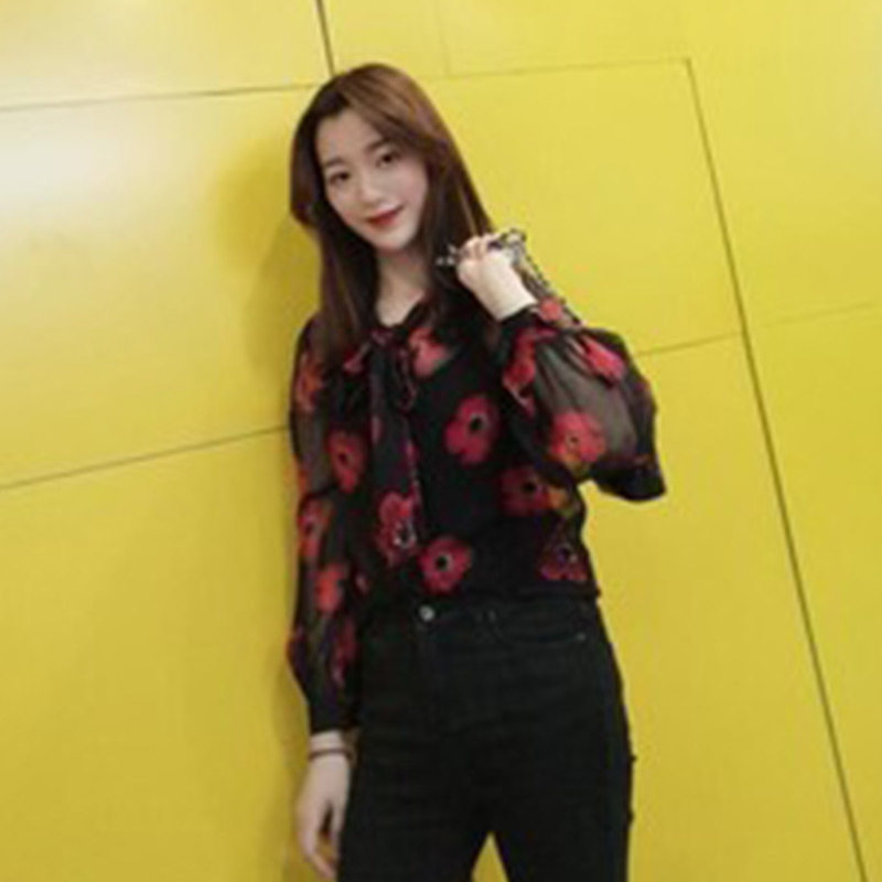 2019 Spring Female Stars are good Yao Chen shirt shirt with Su Ming Yu printed butterfly tie with clothes