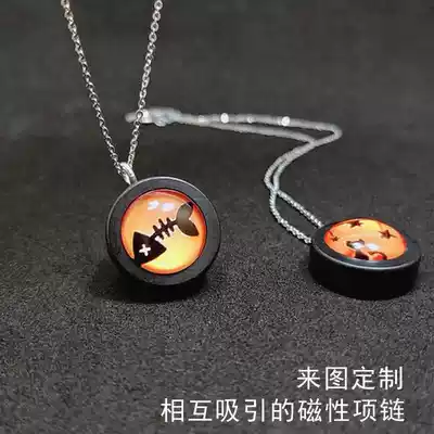 Couple necklace pair of sandalwood custom magnetic photo pendant student simple creative lettering retro gift