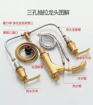 Titanium alloy color draw type basin faucet cold and hot water double three-hole retractable dressing room faucet