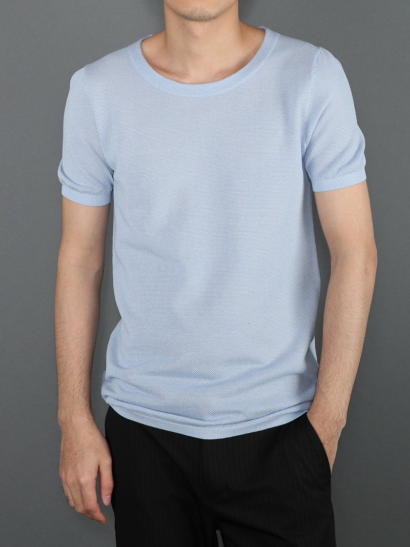 Summer New Breathable Stretch Lass Cotton Men's Fashion Slim Round Neck Pineapple Knit Short Sleeve T-Shirt Short T