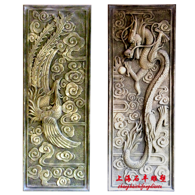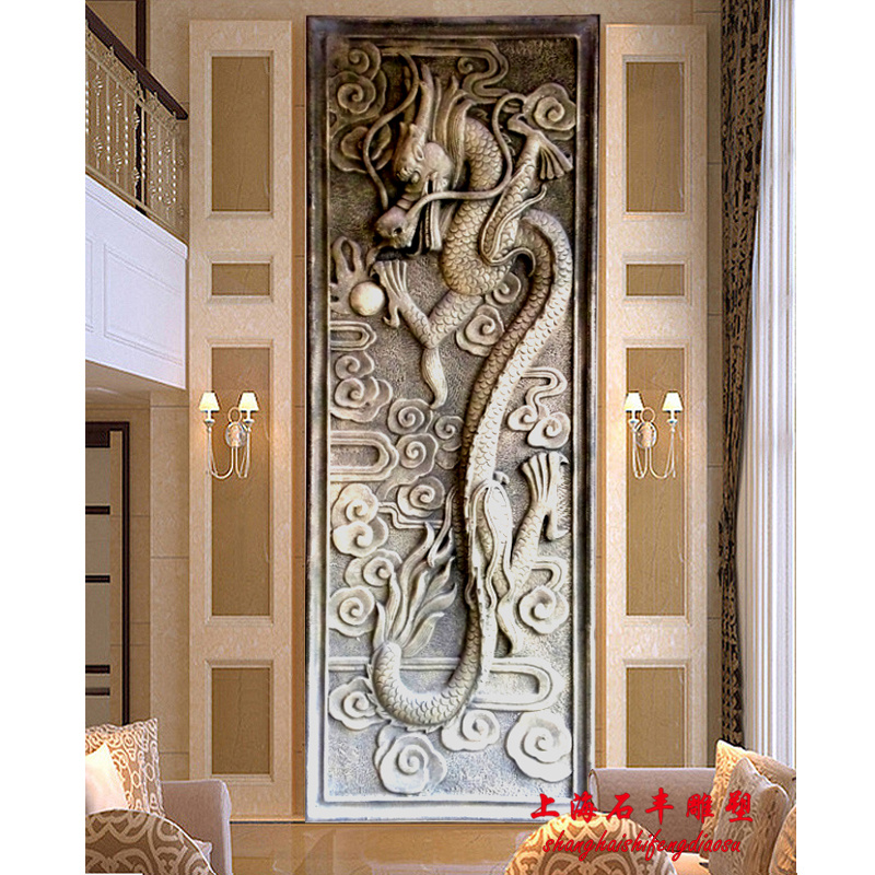 Sandstone Reliefs Chinese Style Frescoed Villa Hotel Background Wall Decoration Dragon Relief Dragon Phoenix presents Xiang Double Dragon Opera Bead Relief