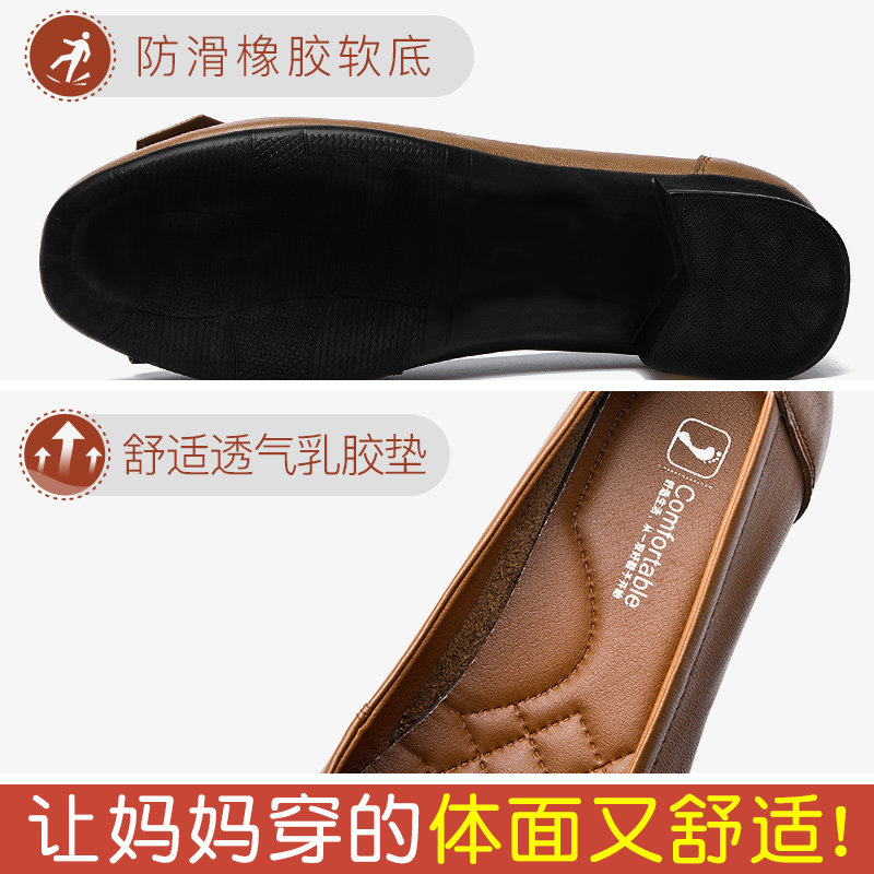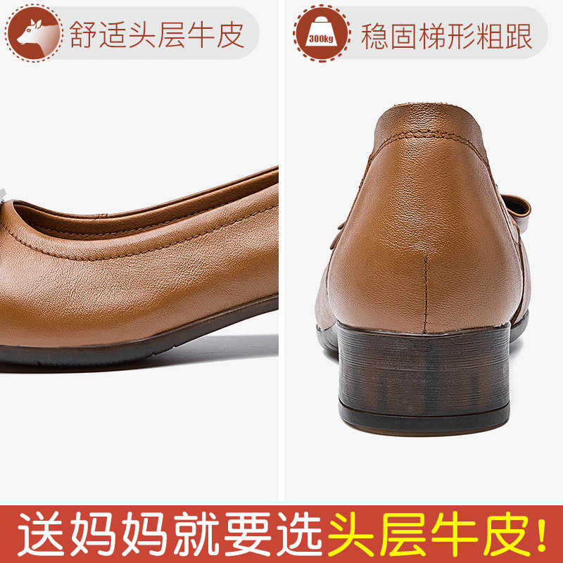 Women's shoes spring and autumn models large size 42 medium heel leather soft bottom comfortable mother shoes thick heel black work shoes work shoes