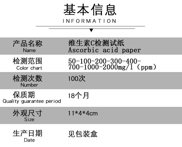 Vitamin C test paper test strip VC content test paper ascorbic acid rapid determination test strip juice