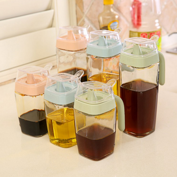 Vegan large number glass oil jug Home Bottling Oil Bottle Kitchen Transparent Leakproof without hanging oil soy sauce bottle oil jug 550ML