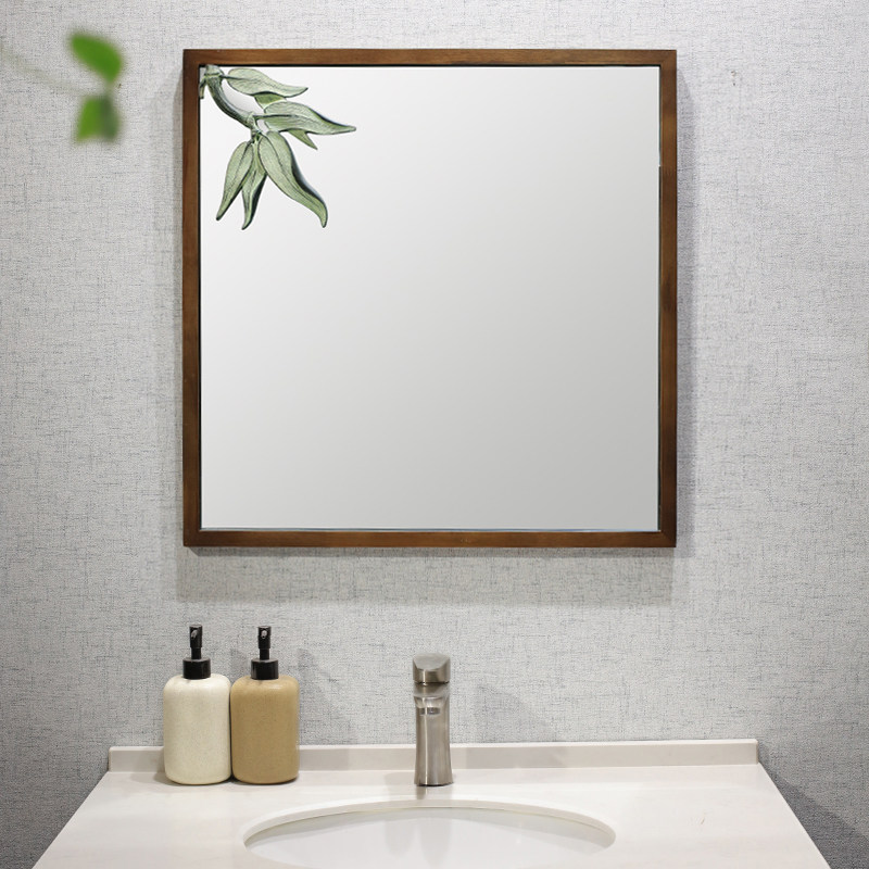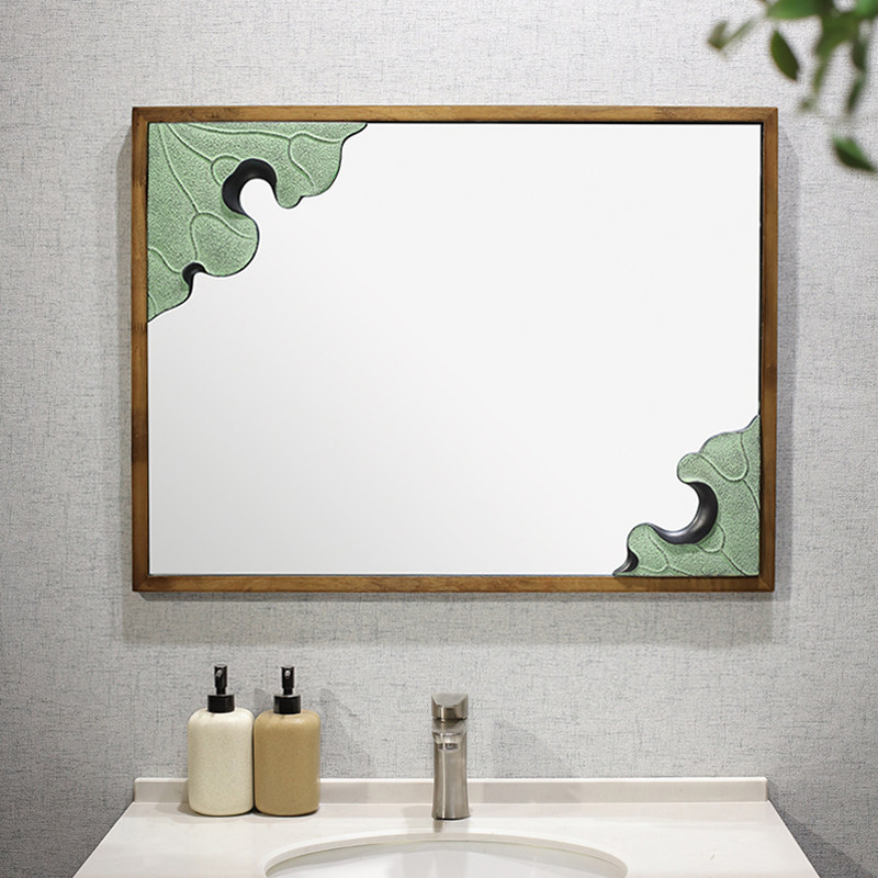 Chinese style solid wood frame bathroom mirror Chinese style retro bathroom mirror Wall-mounted sink vanity room Zen makeup mirror