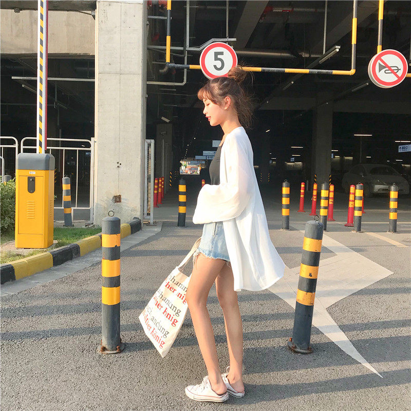Chiffon shirt women's spring and summer Korean version of long cardigan sunscreen very fairy seaside beach clothes jacket thin coat