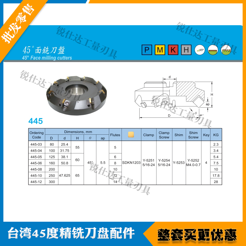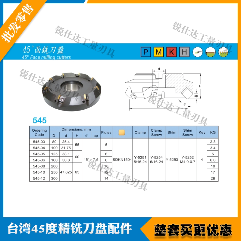 Taiwan imports 45-degree fine milling cutter disc accessories face milling cutter disc bevelled press block double head screw pressure plate knife cushion