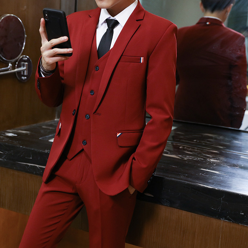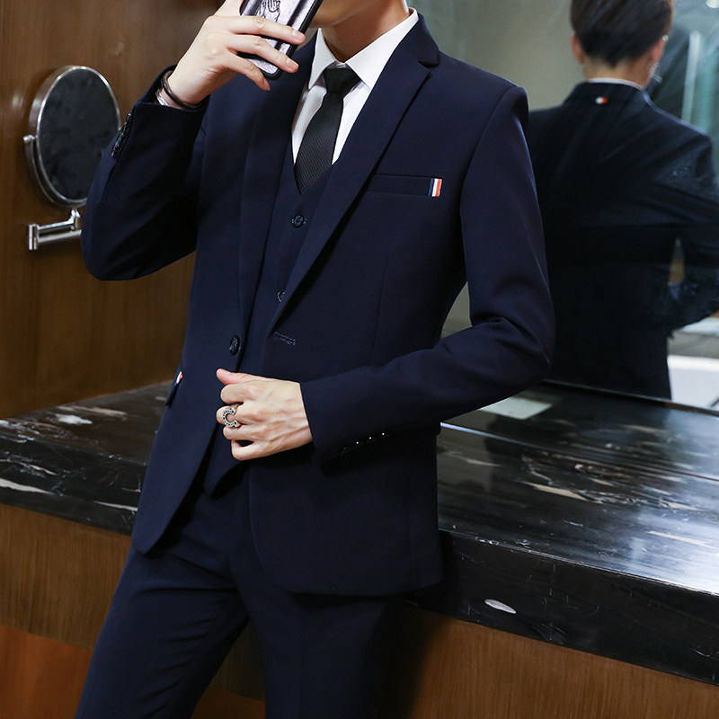 Men's suit Slim Korean casual suit Men's three-piece suit Business wedding formal coat Handsome small suit