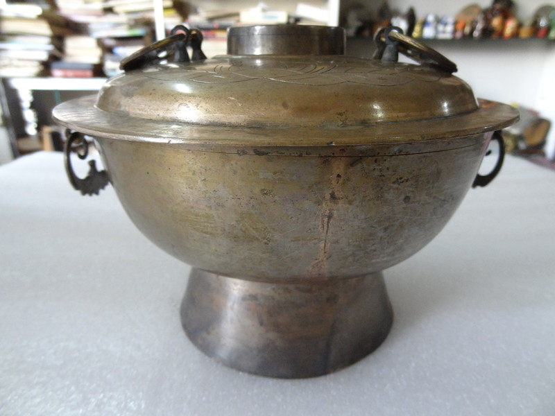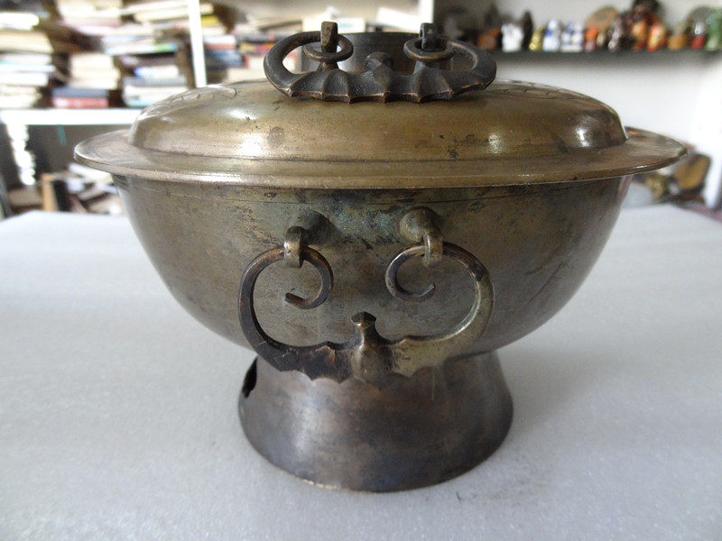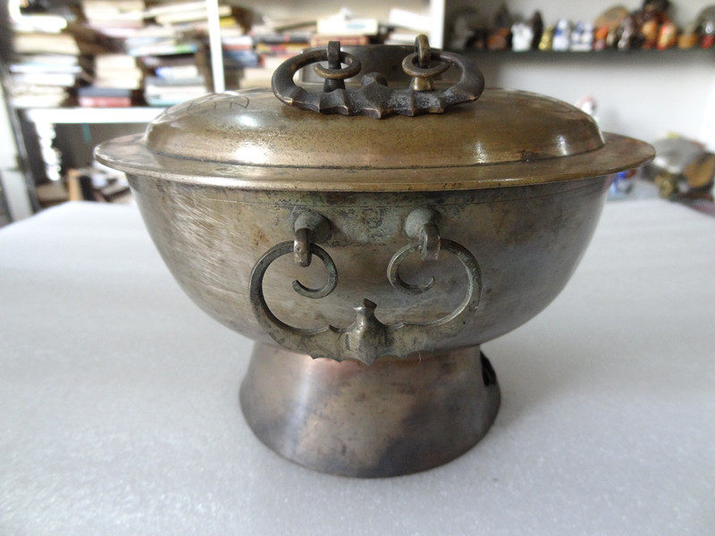 Boutique North Korea Centuries-old Brass Alcohol Stove Hotpot Bronze Instrumental Folk Carved Tattoo