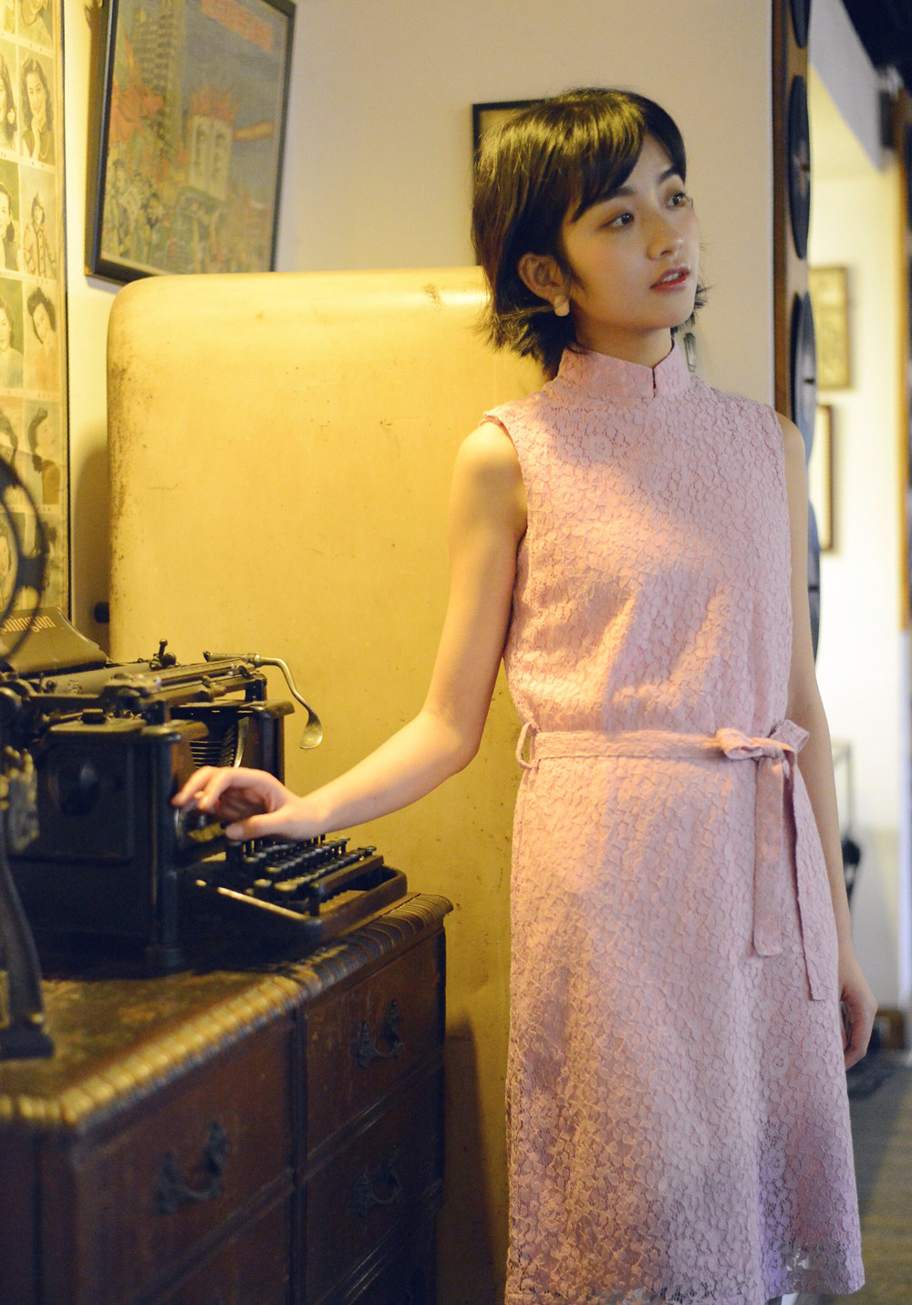 Sleeveless short light Chinese commuted pure lace dress Sakura Fei
