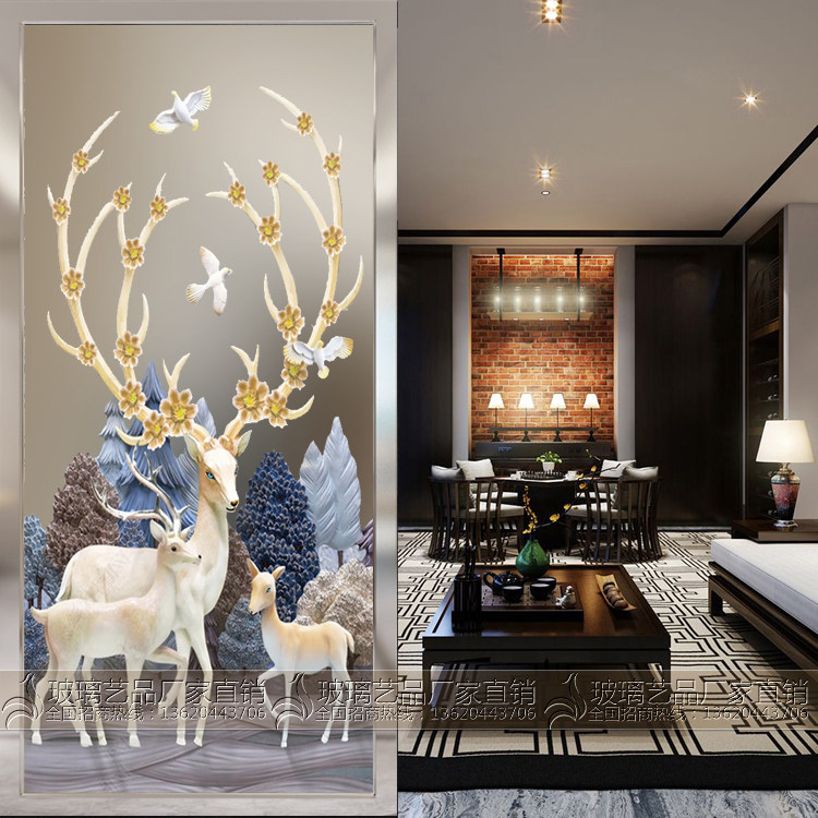 Art glass partition wall living room frosted light-transmitting craft screen simple European-style TV background wall porch bathroom