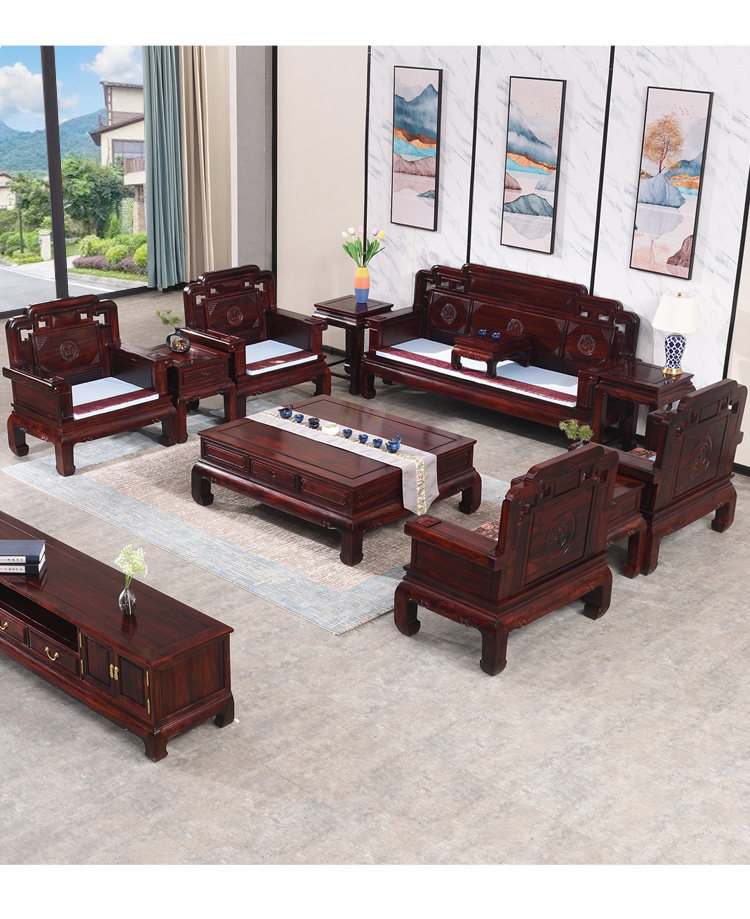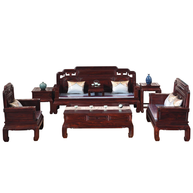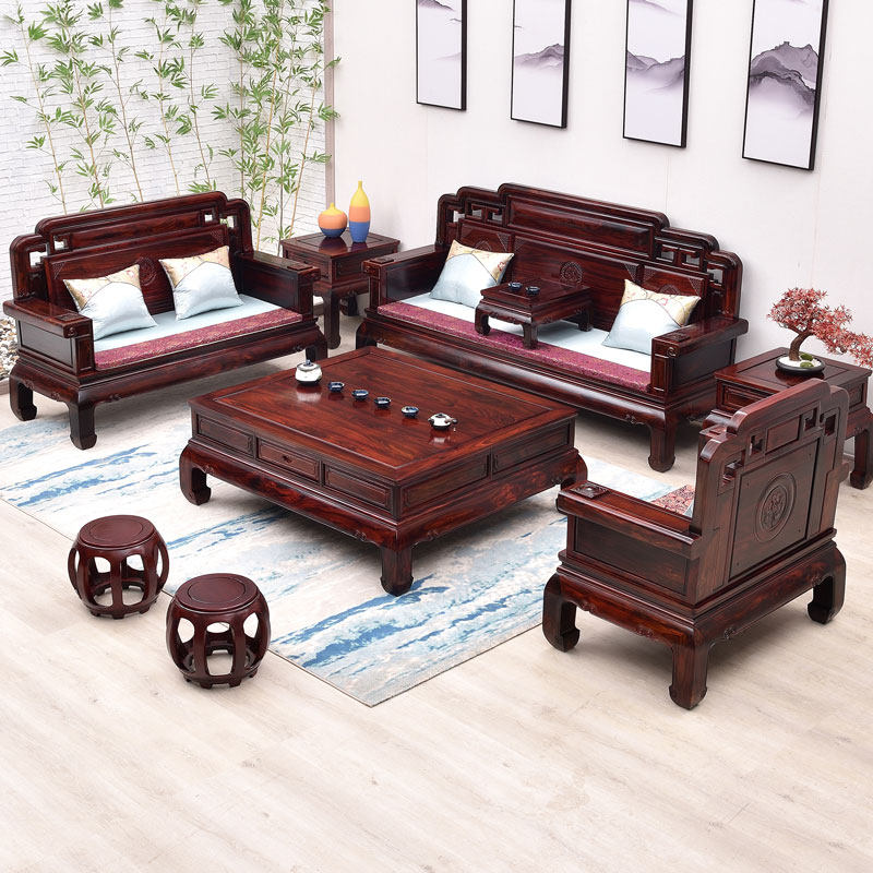 Dongyang mahogany sofa combination Ming-style plain surface simple furniture African rosewood Indonesian black rosewood national color and heavenly fragrance