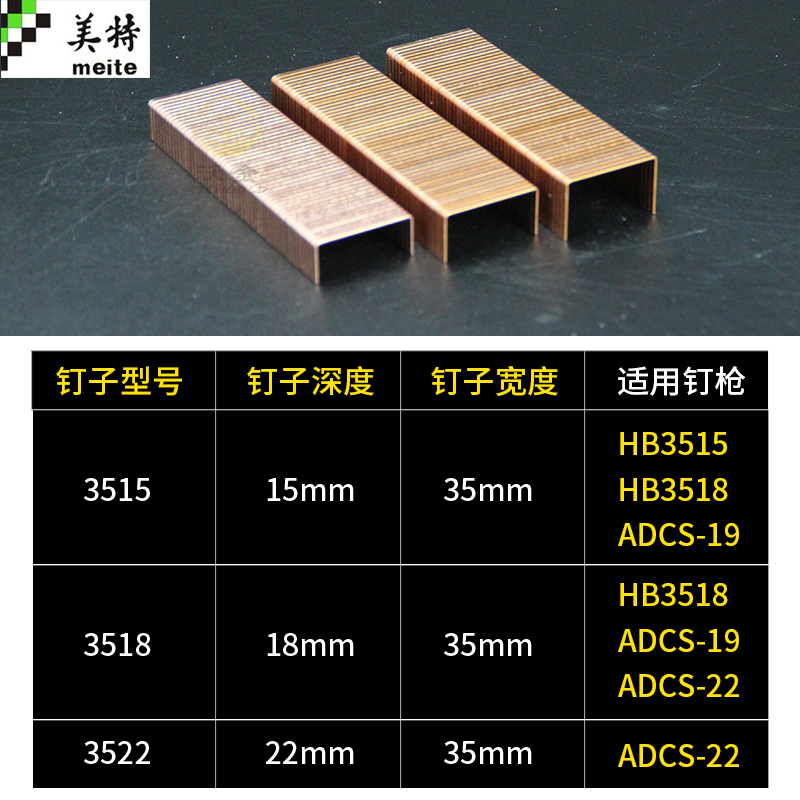 Meite 3515 3518 3522 carton sealing nail sealing gun nail Copper coated corrugated paper code nail Paper skin gun nail