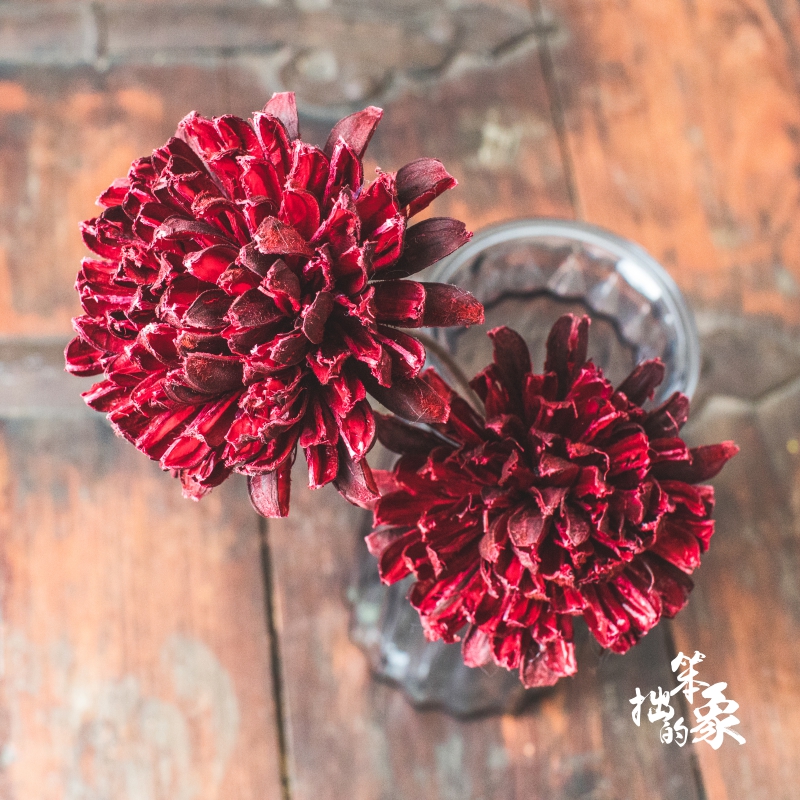 Clumsk Elephant Home Decoration Handmade Creative Wood Chrysanthemum Natural Plant Floral Design Red Ink Peony Dry Flowers