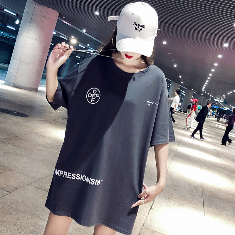 Stock of Euro Grand edition T-shirt woman short sleeve loose 2022 new Korean version Tidal Port Wind T-shirt Half Sleeve Couple Spring Summer Wins