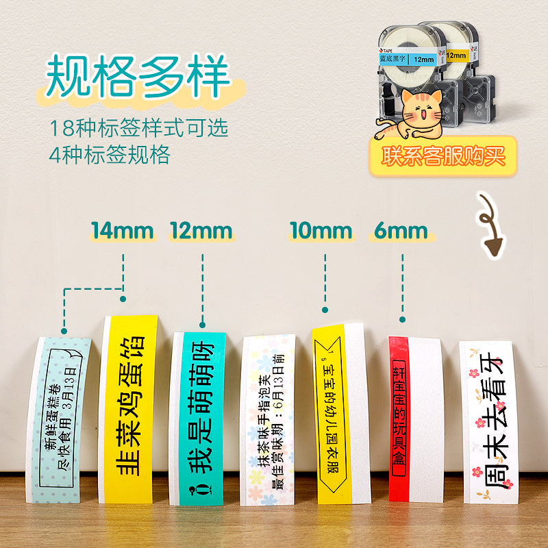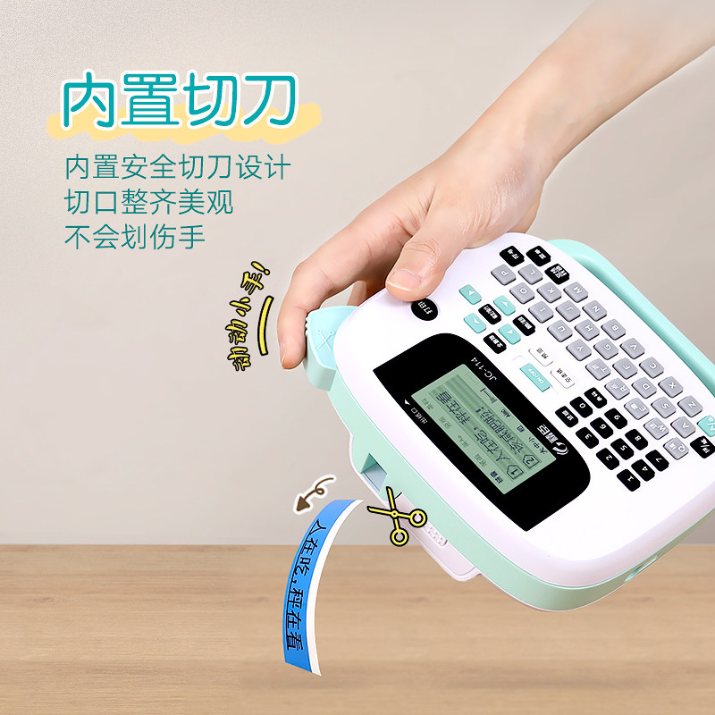 Green standard (with 1 roll of 12mm black on white label) Blue standard (with 1 roll of 12mm black on white label) Package 1 (machine standard optional 1 roll of label) Package 2