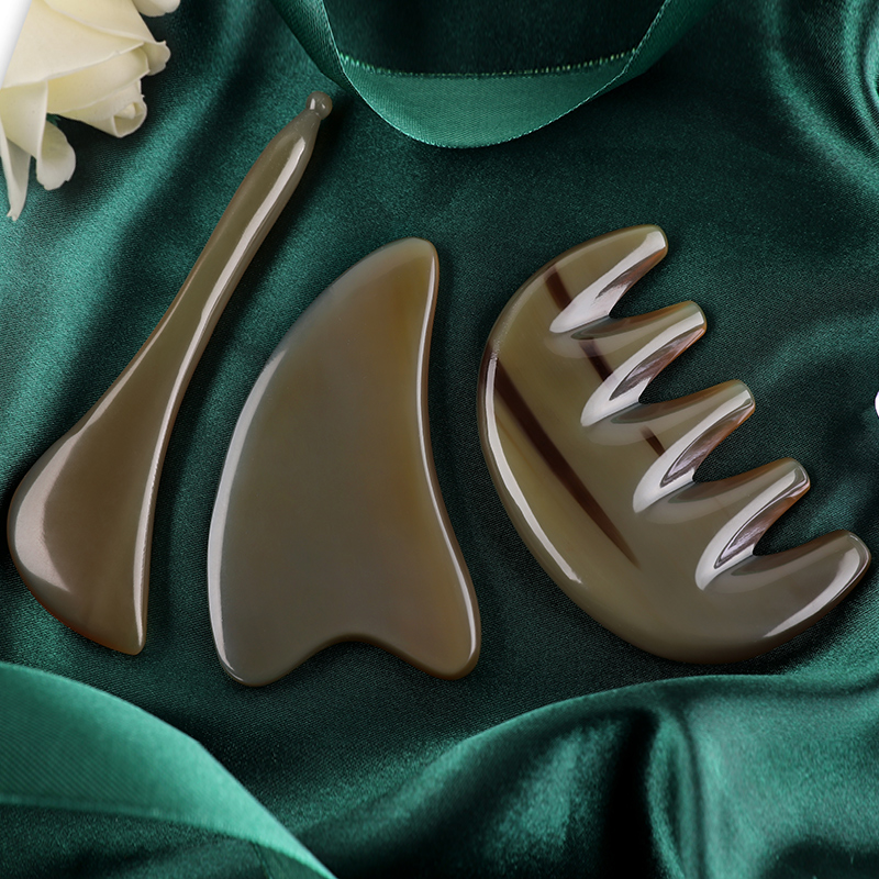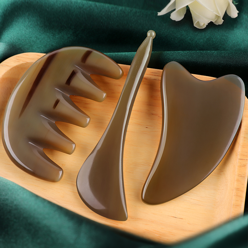 White water buffalo horn comb scraping plate suit full set of women's fascia Facial beauty facial head meridians full body generic-Taobao