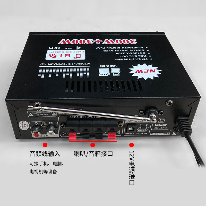 New mini small power amplifier speaker power amplification plug-in card U disk radio DC AC bluetooth home