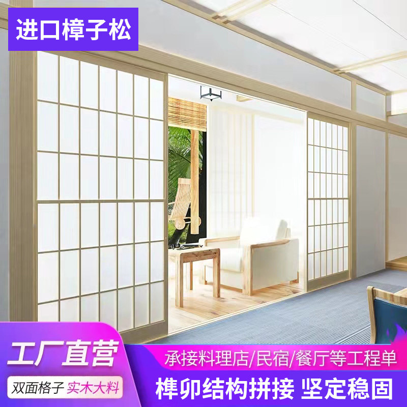 Japanese sliding door whole house custom tatami checker door B&B and room door sliding door folding solid wood barrier door