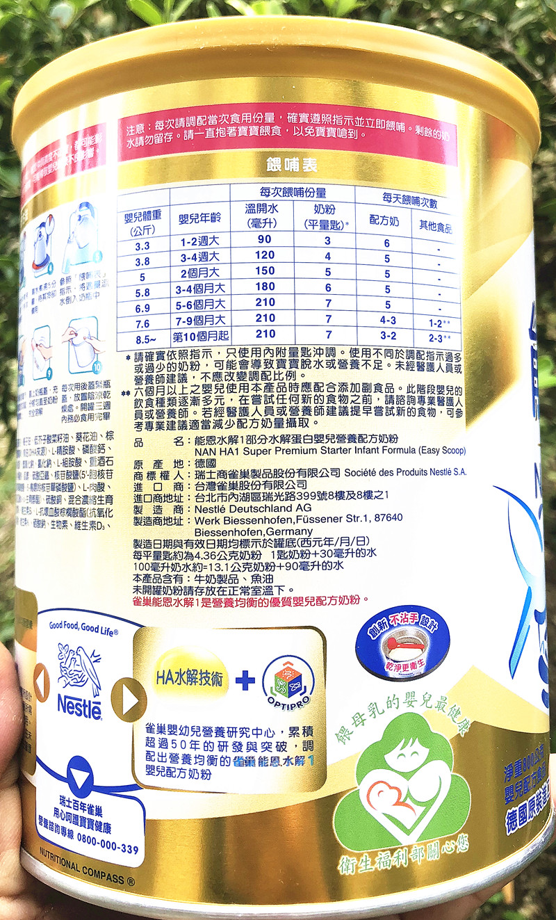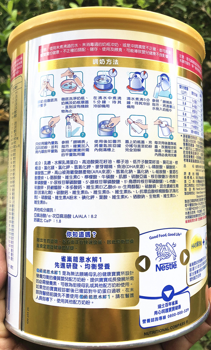 German original Taiwanese version Nestlé NHA Hydrolyzed Protein Powder 1 segment 800g partially hydrolysis 2 tanks