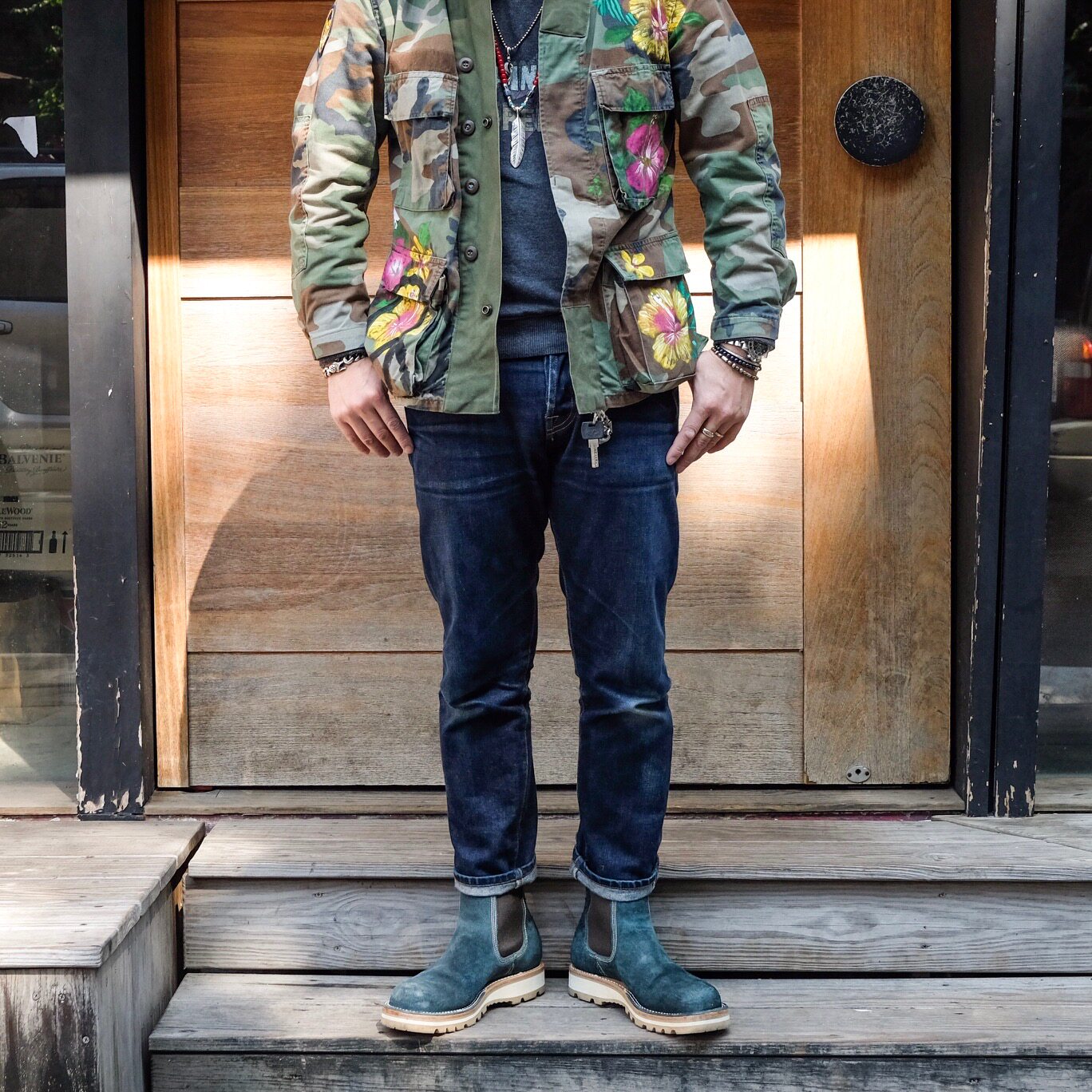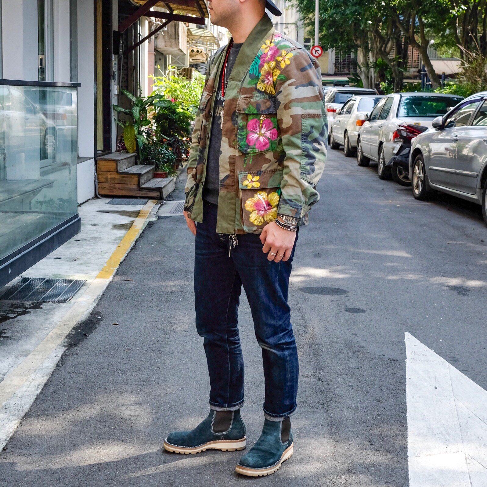 American heavy industry Dr Collectors boss hand-painted hibiscus flower peace totem antique camouflage M65 robe