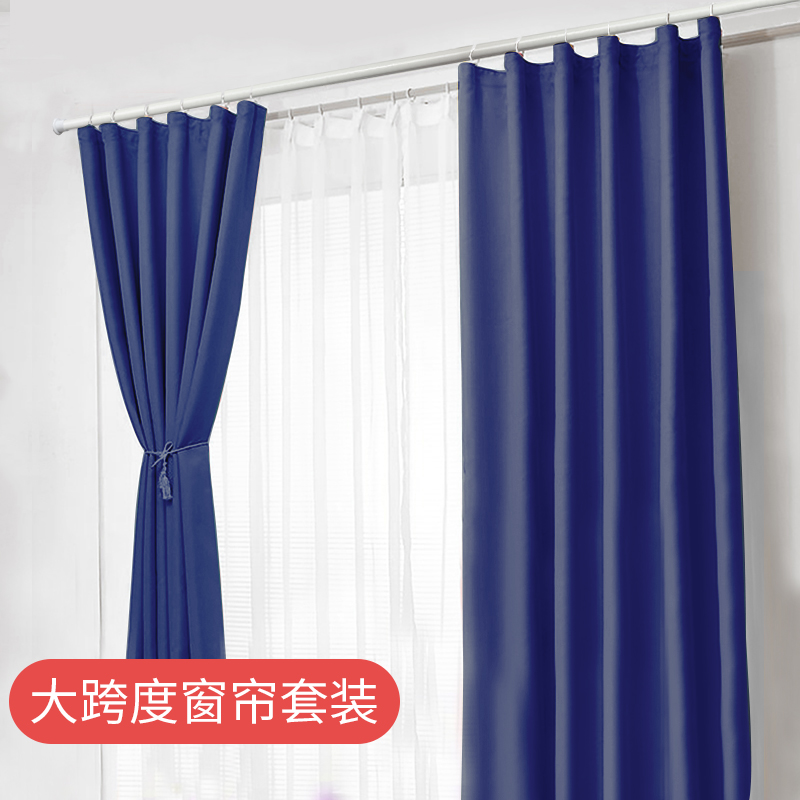 Living room telescopic rod curtain free hole installation Rental house rental bedroom simple shading blue fresh blue suit