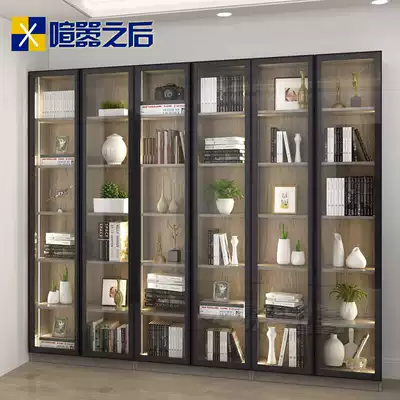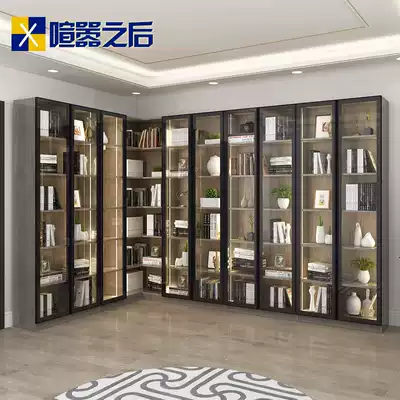 Nordic tempered glass door Corner bookcase shelf Office display cabinet with light combination bookcase Custom bookshelf