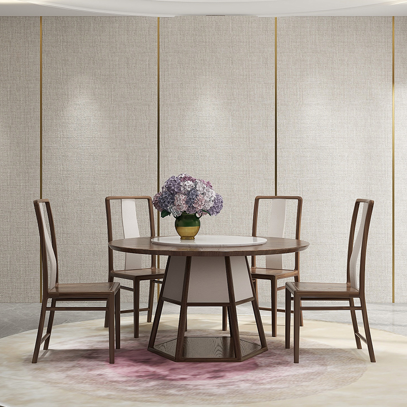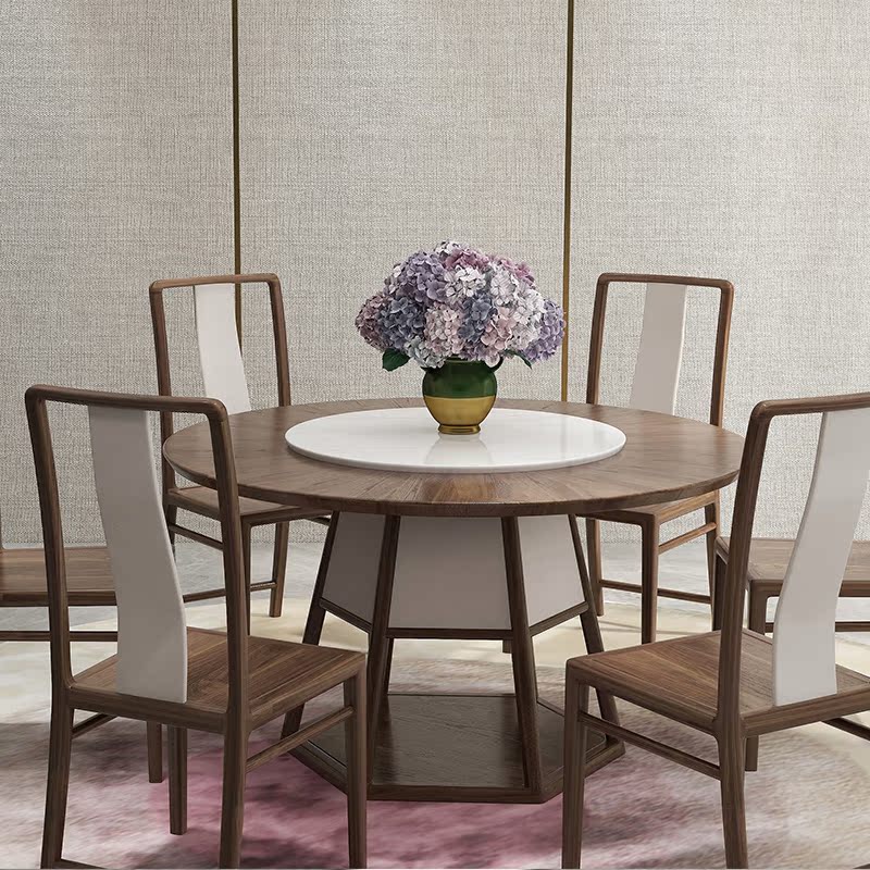 Yunshe new Chinese round dining table 18 meters dining room furniture round ash wood dining table chair marble turntable