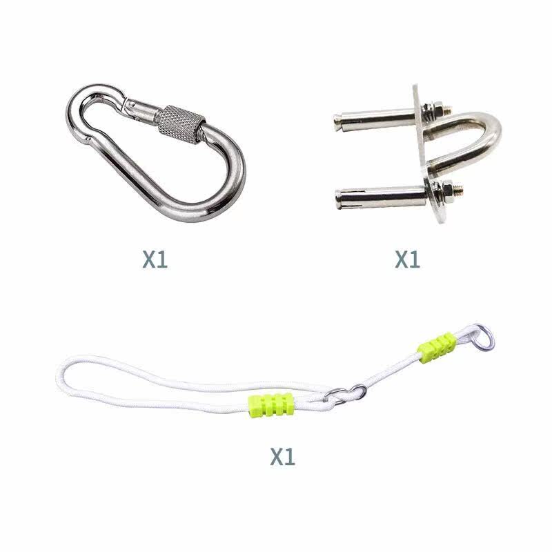 Single hole (expansion screw) two-eye disc (expansion screw) four-eye disc (expansion screw) 1 m white (adjustment rope) 1.5 m white (adjustment rope) 1 m brown (adjustment rope) 1.5 m brown (adjustment rope) buckle (spring hook) 1.5 m (branch adjustment belt) connection with small horizontal bar