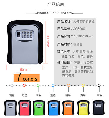 Decoration password box key box anti-theft door lock box cat eye all metal punch-free construction site temporary installation-free