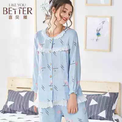 Xibeya thin cotton gauze moon clothing summer postpartum pregnant women's pajamas set breastfeeding home clothing